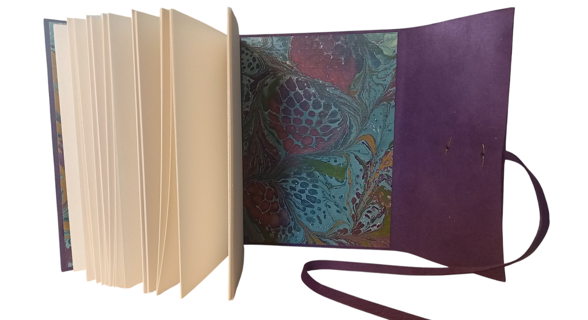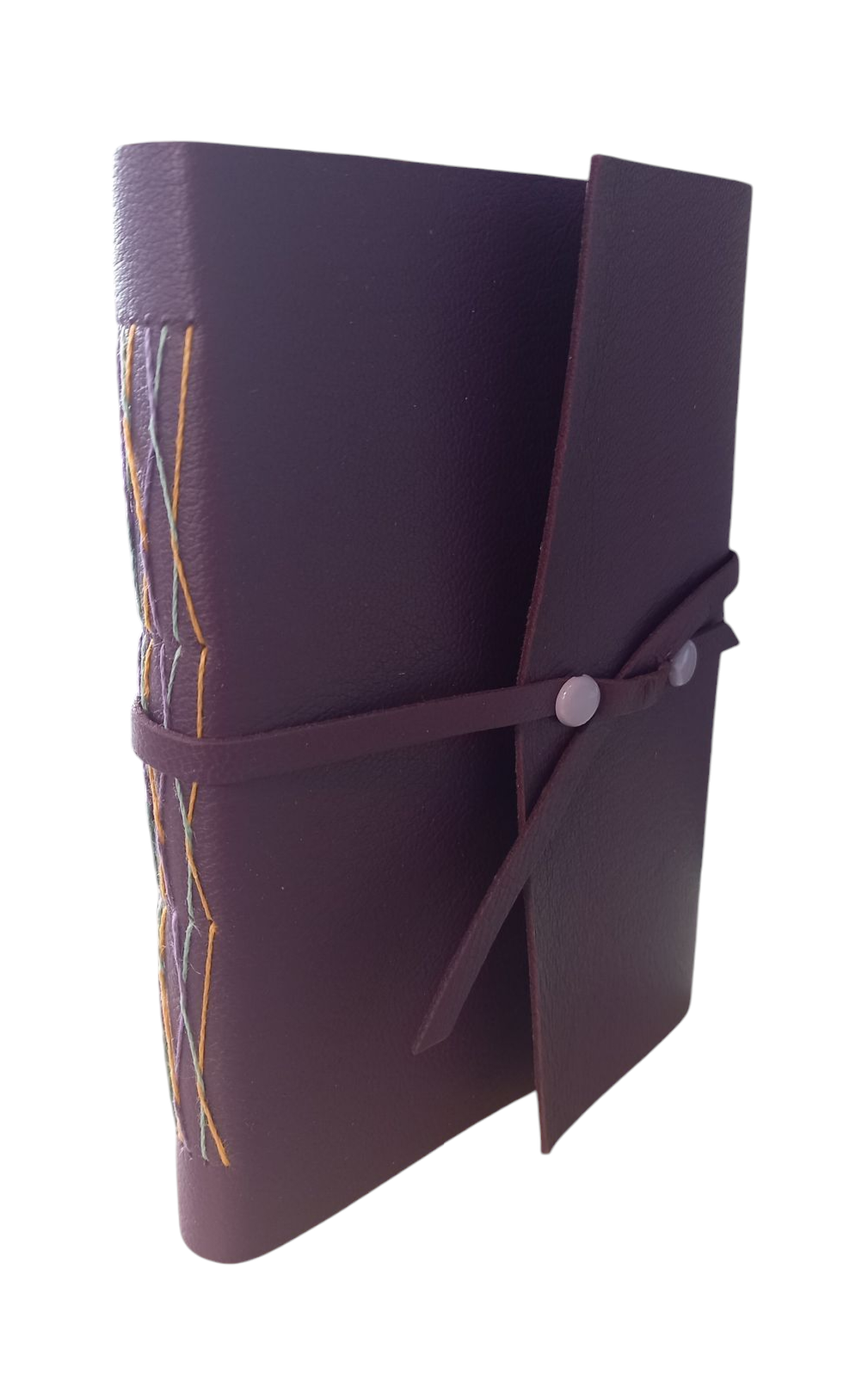 Reliez votre carnet de voyage avec une couture dite "nid d'abeilles", souple, pratique, et muni d'un lacet en cuir pour lien de fermeture.