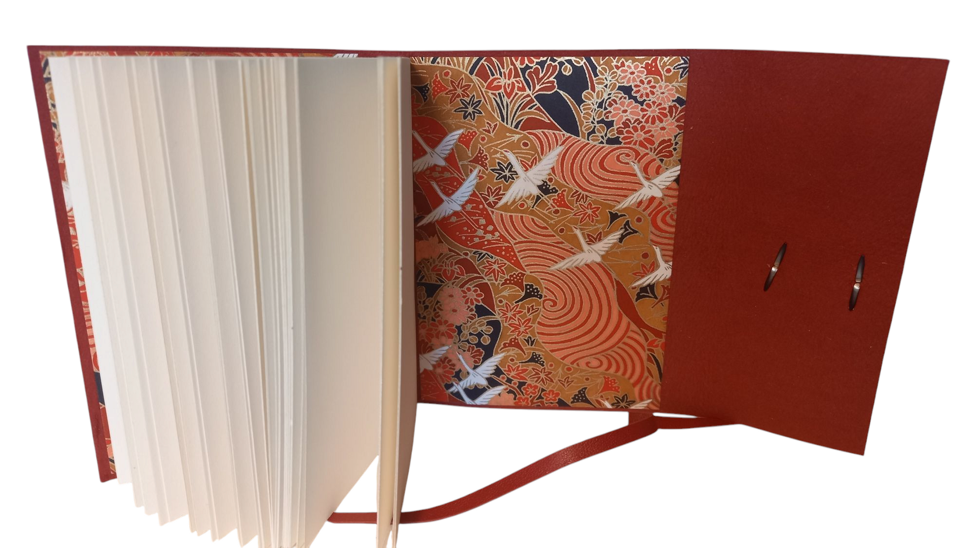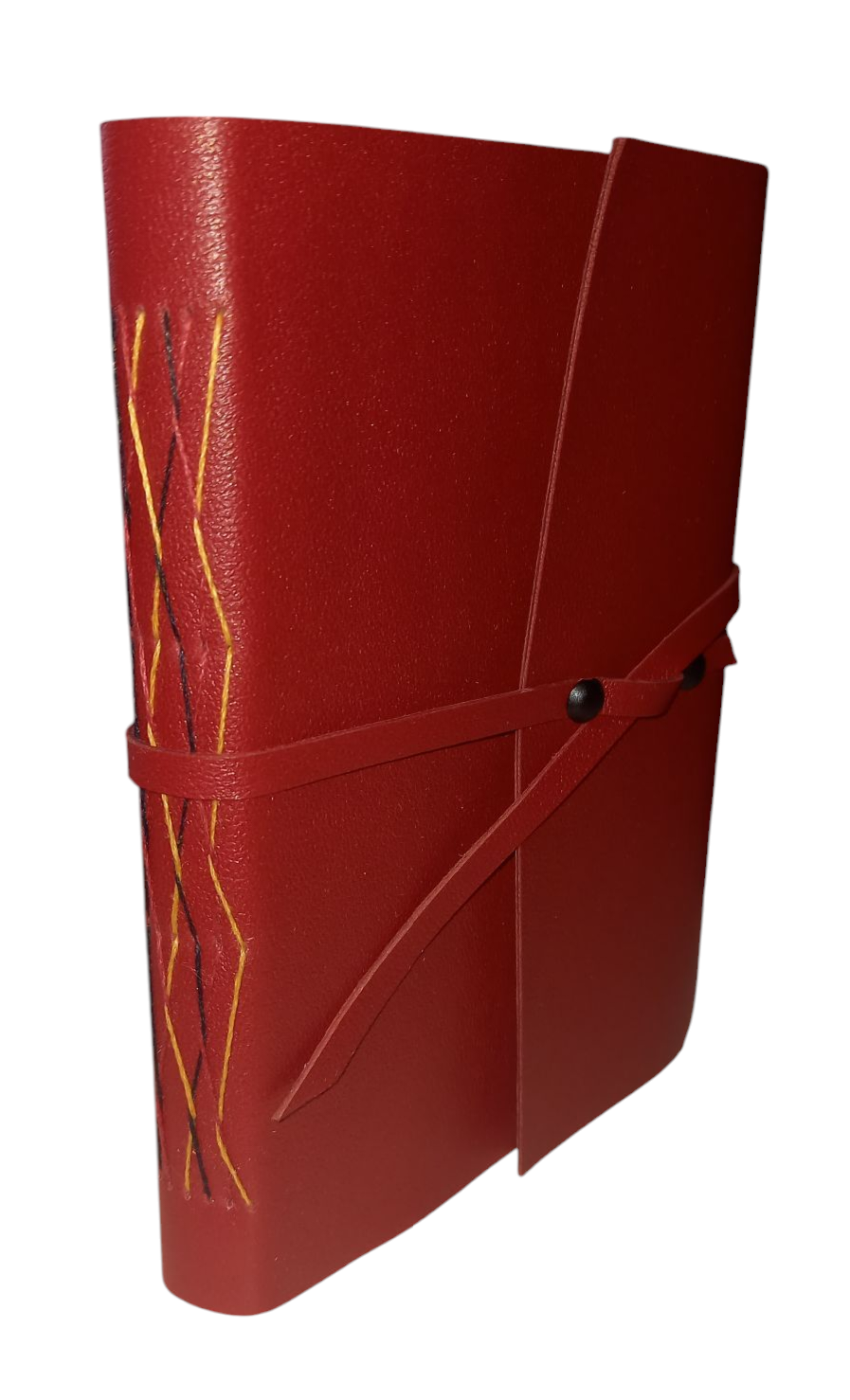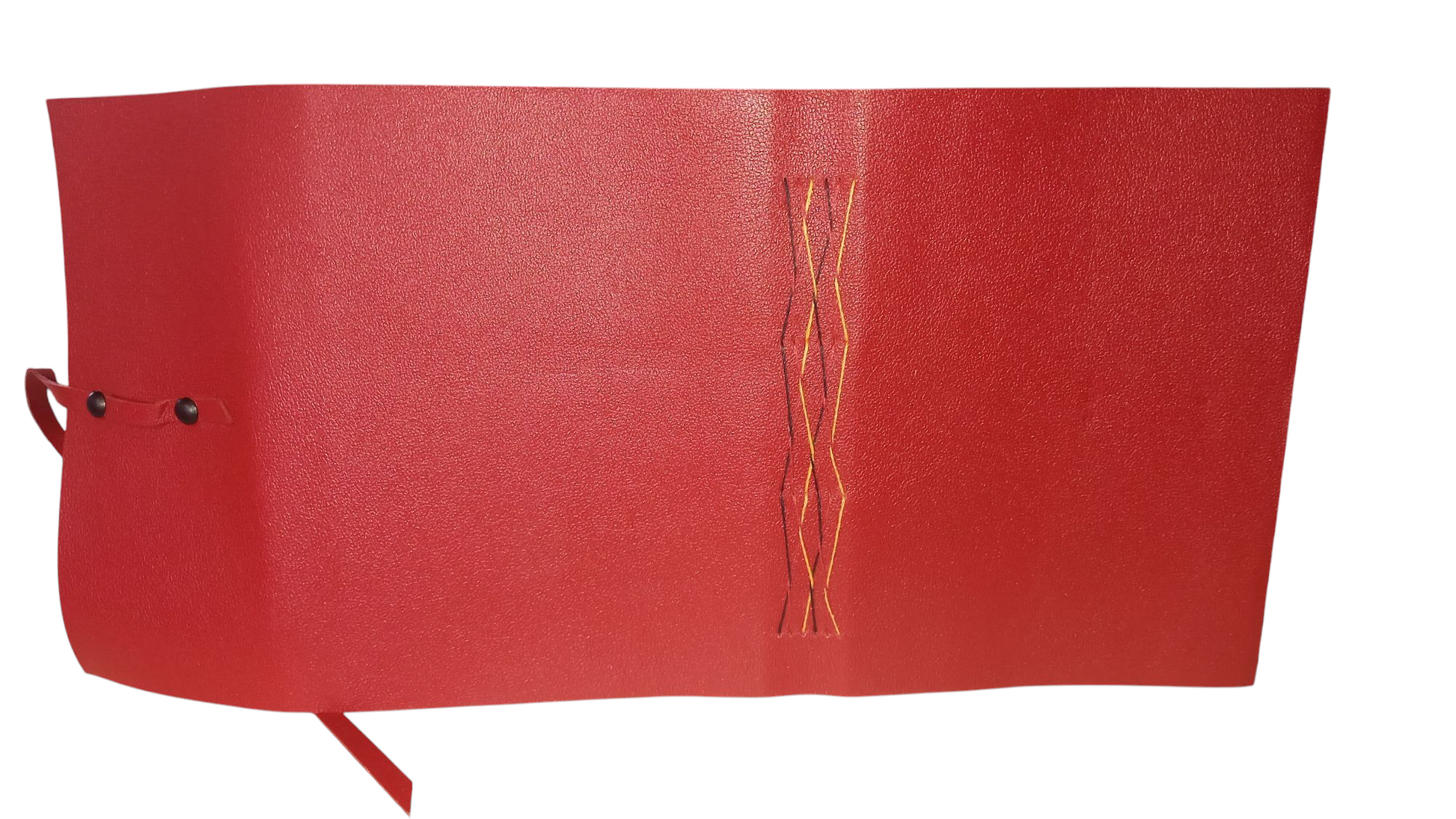 Reliez votre carnet de voyage avec une couture dite "nid d'abeilles", souple, pratique, et muni d'un lacet en cuir pour lien de fermeture.
