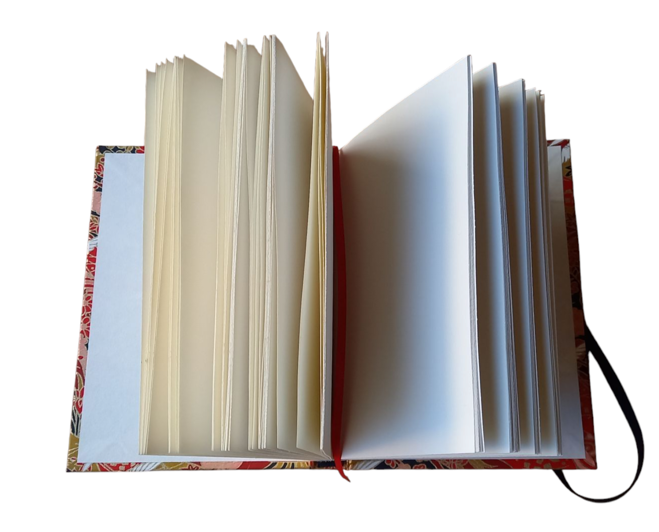 Reliez votre carnet avec une couture "copte" et embellissez le d'une jolie couverture cartonnée agrémentée d'un élastique de couleur pour faciliter sa fermeture.