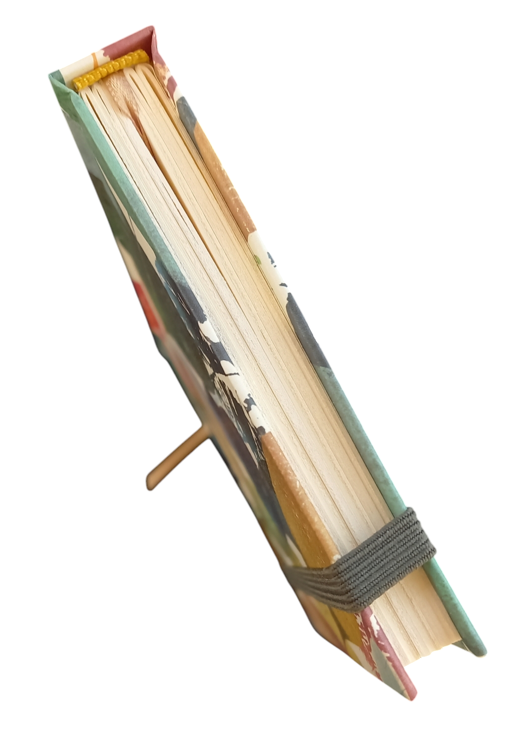 Reliez votre carnet avec une couture "copte" et embellissez le d'une jolie couverture cartonnée agrémentée d'un élastique de couleur pour faciliter sa fermeture.
