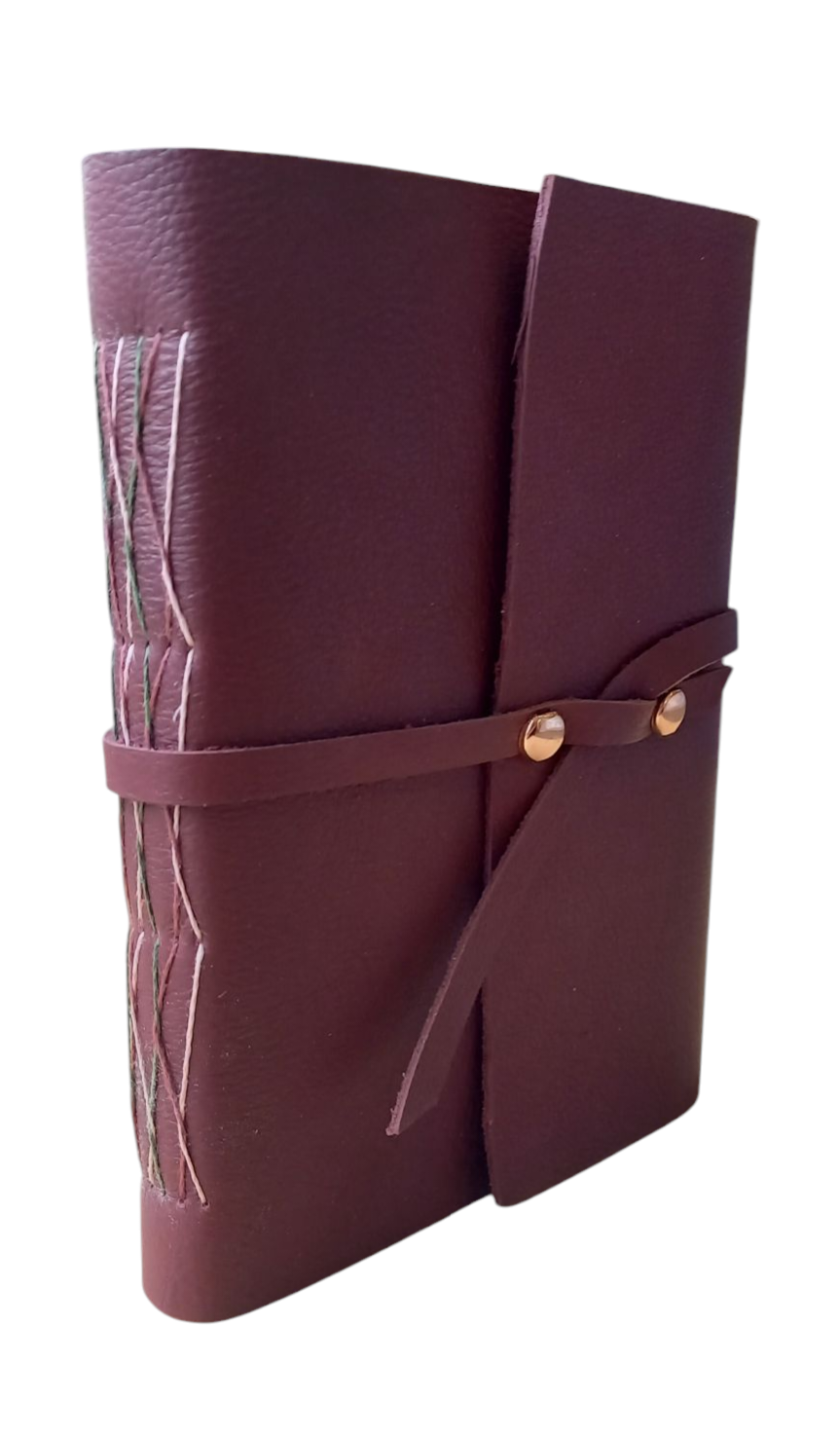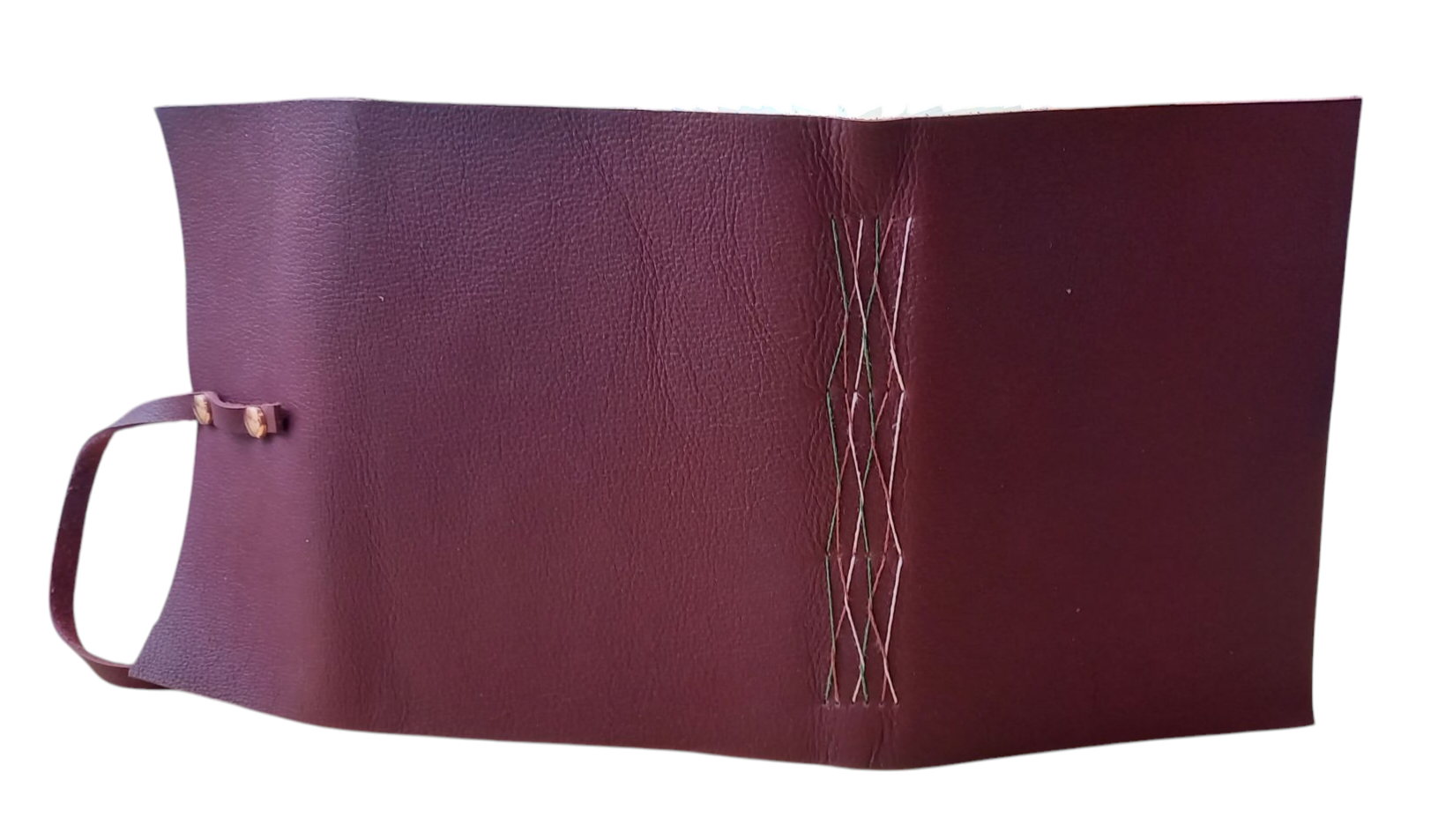Reliez votre carnet de voyage avec une couture dite "nid d'abeilles", souple, pratique, et muni d'un lacet en cuir pour lien de fermeture.