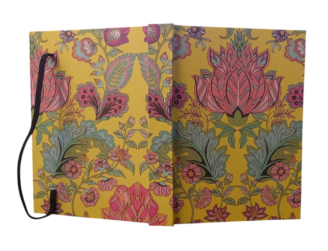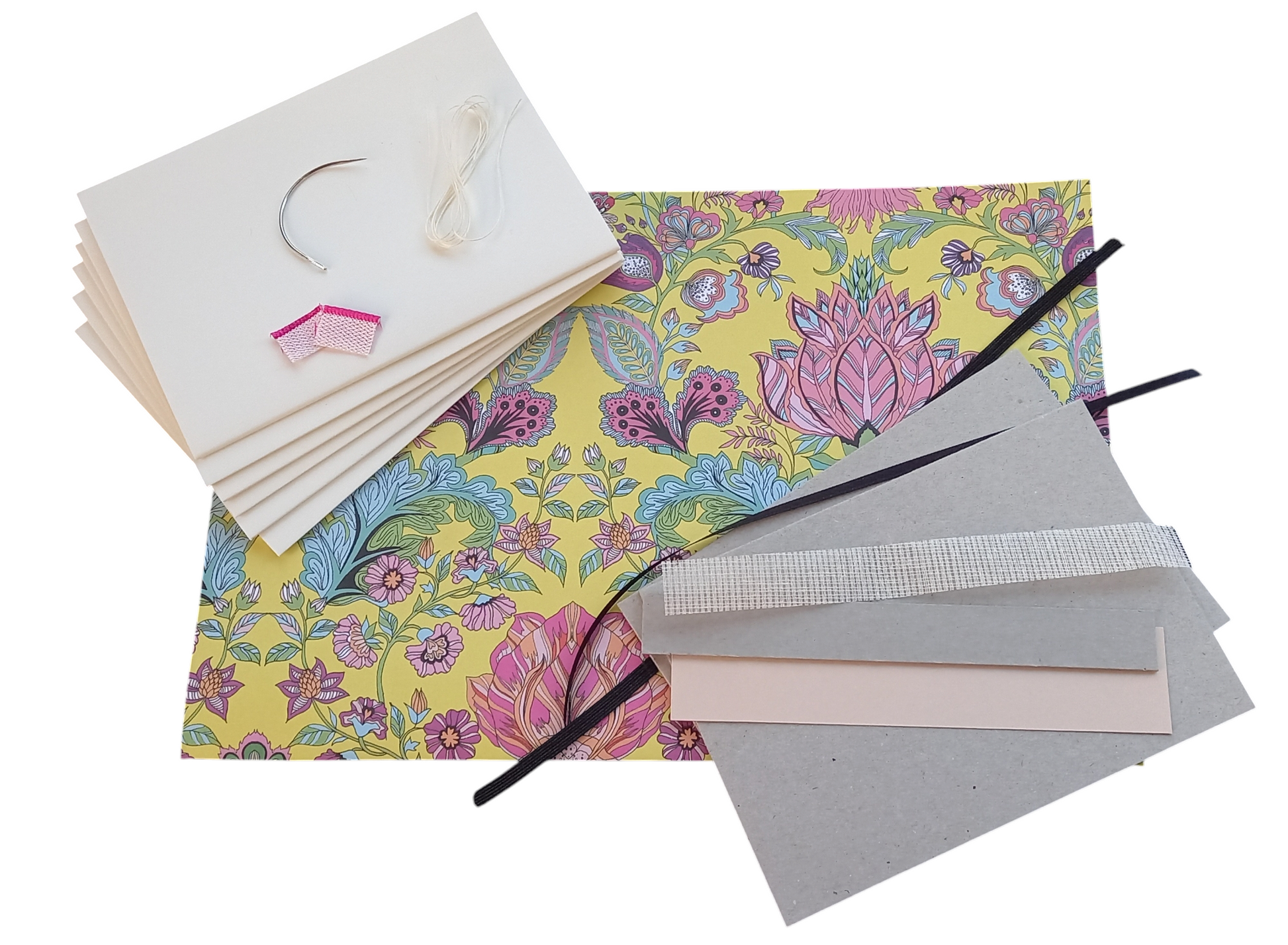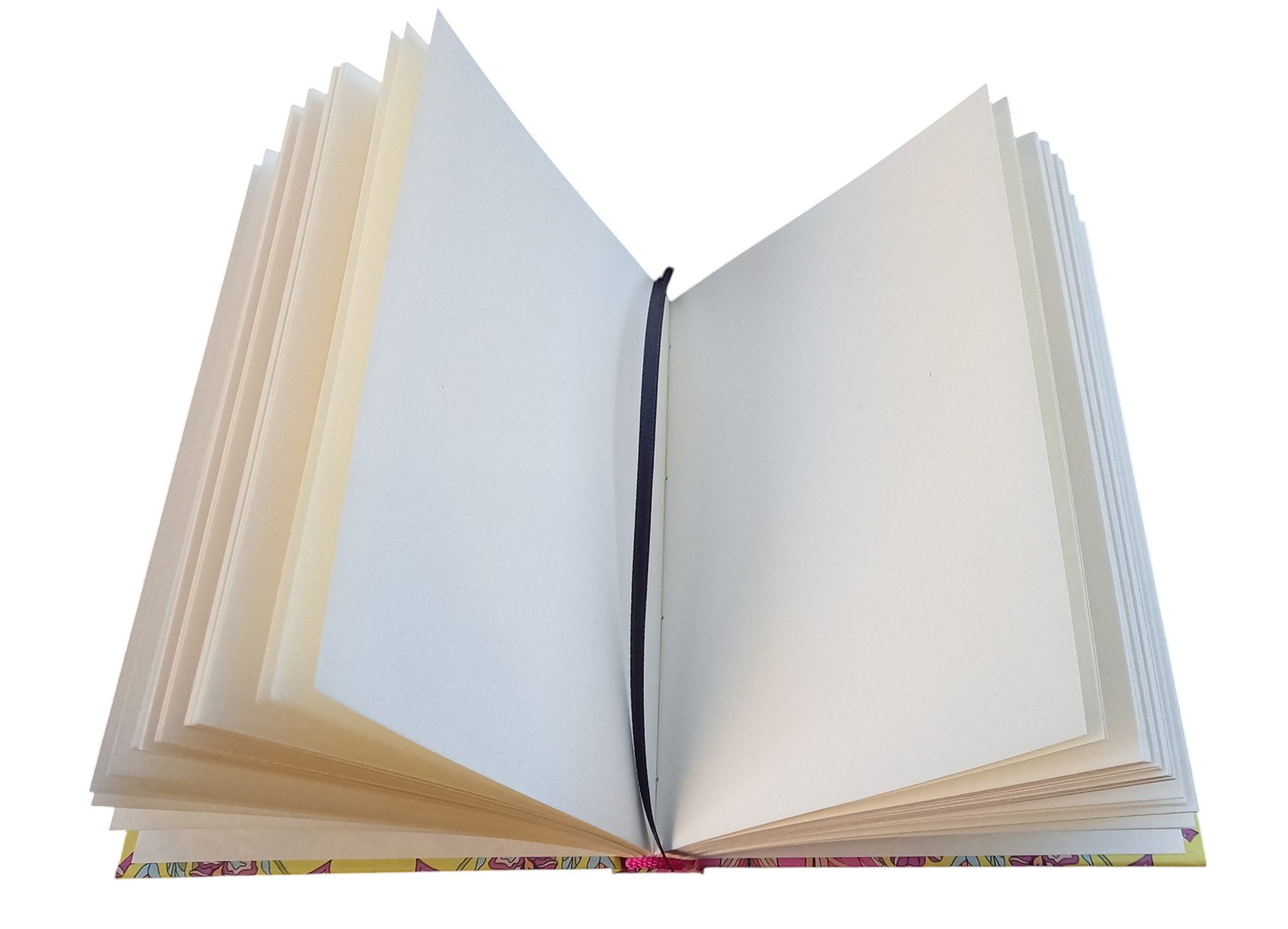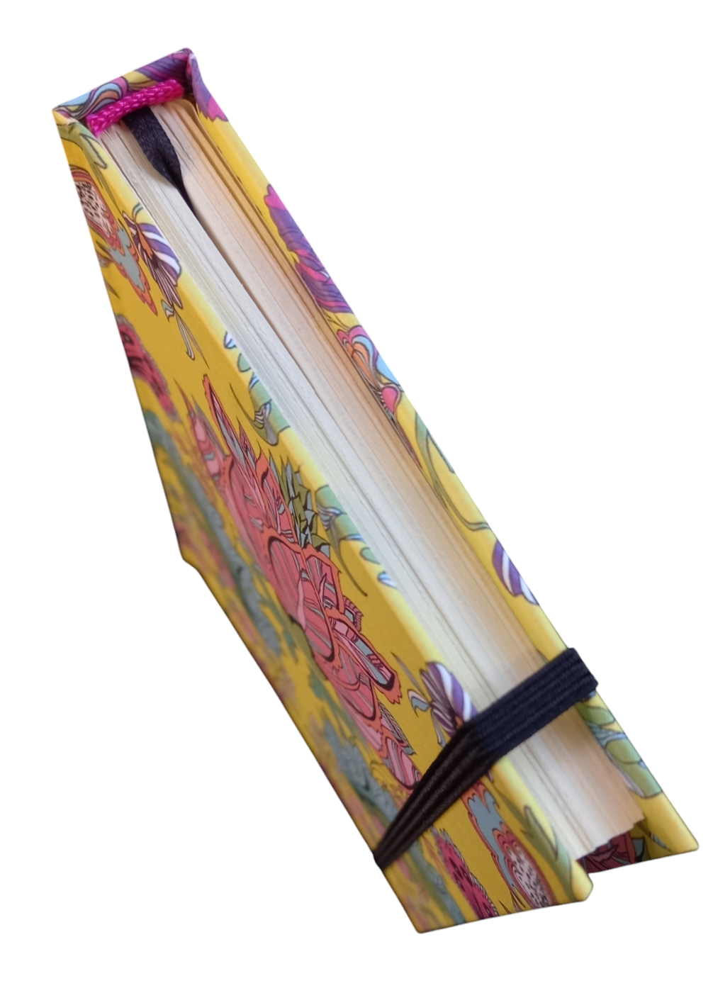 Reliez votre carnet avec une couture "copte" et embellissez le d'une jolie couverture cartonnée agrémentée d'un élastique de couleur pour faciliter sa fermeture.
