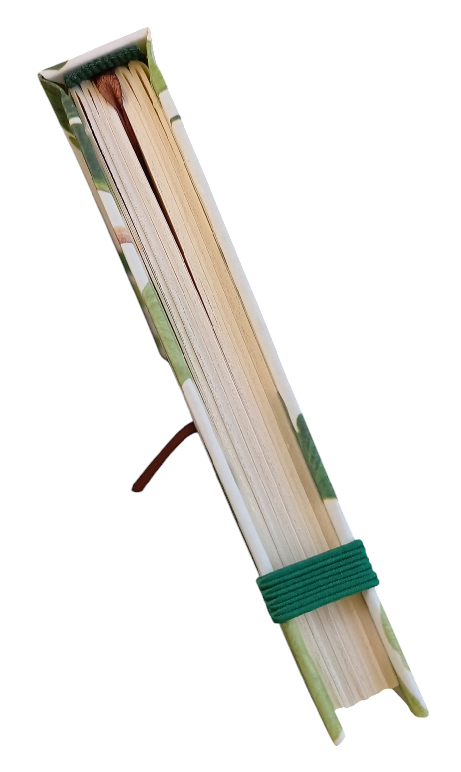 Reliez votre carnet avec une couture "copte" et embellissez le d'une jolie couverture cartonnée agrémentée d'un élastique de couleur pour faciliter sa fermeture.