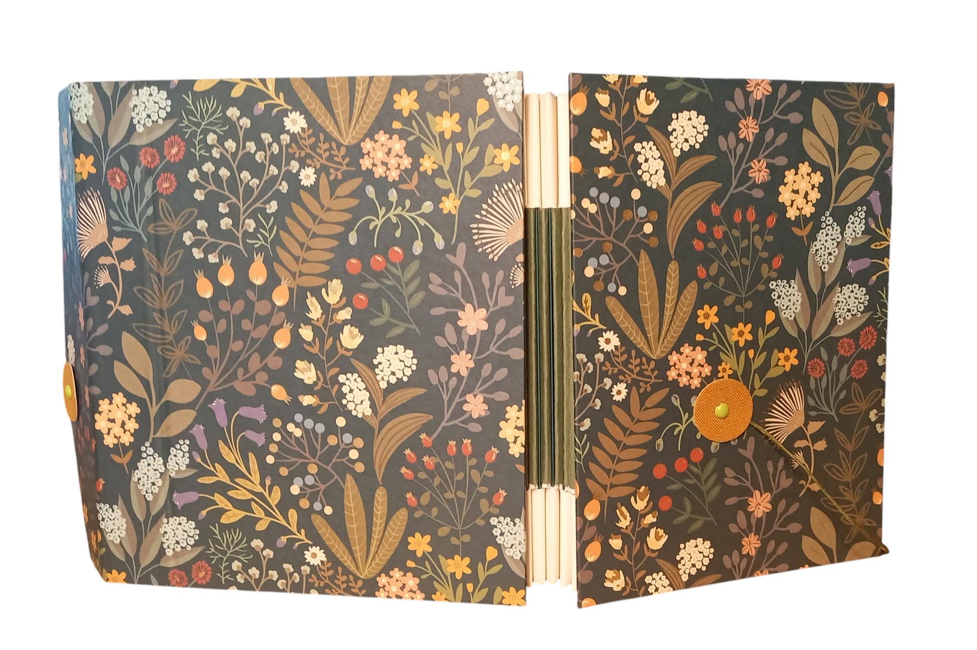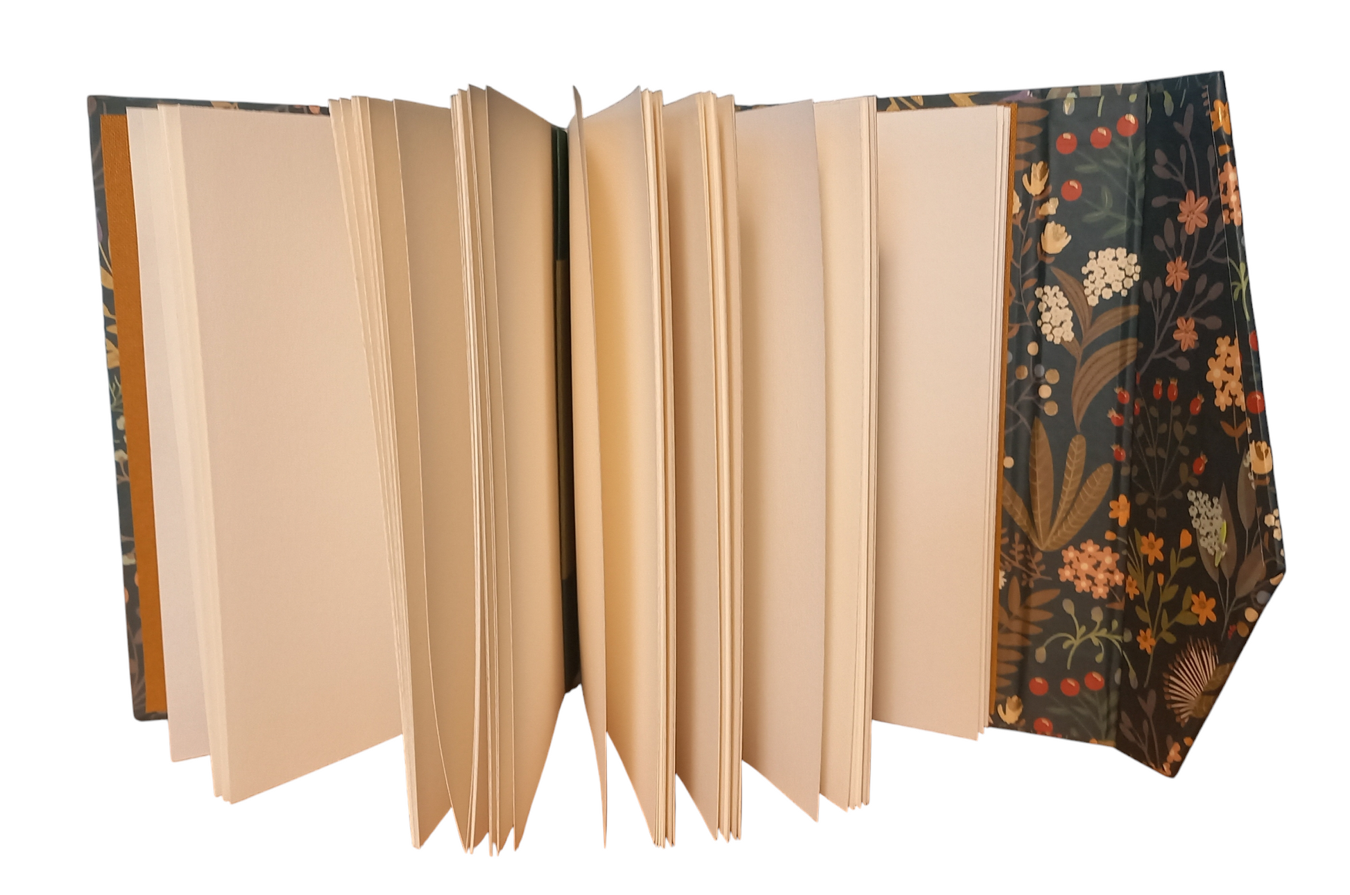 Reliez vos cahiers à l'aide d'un pliage accordéon permettant le maintien des feuillets sans couture. Couverture cartonnée avec un rabat et une fermeture en lacet "à la japonaise".