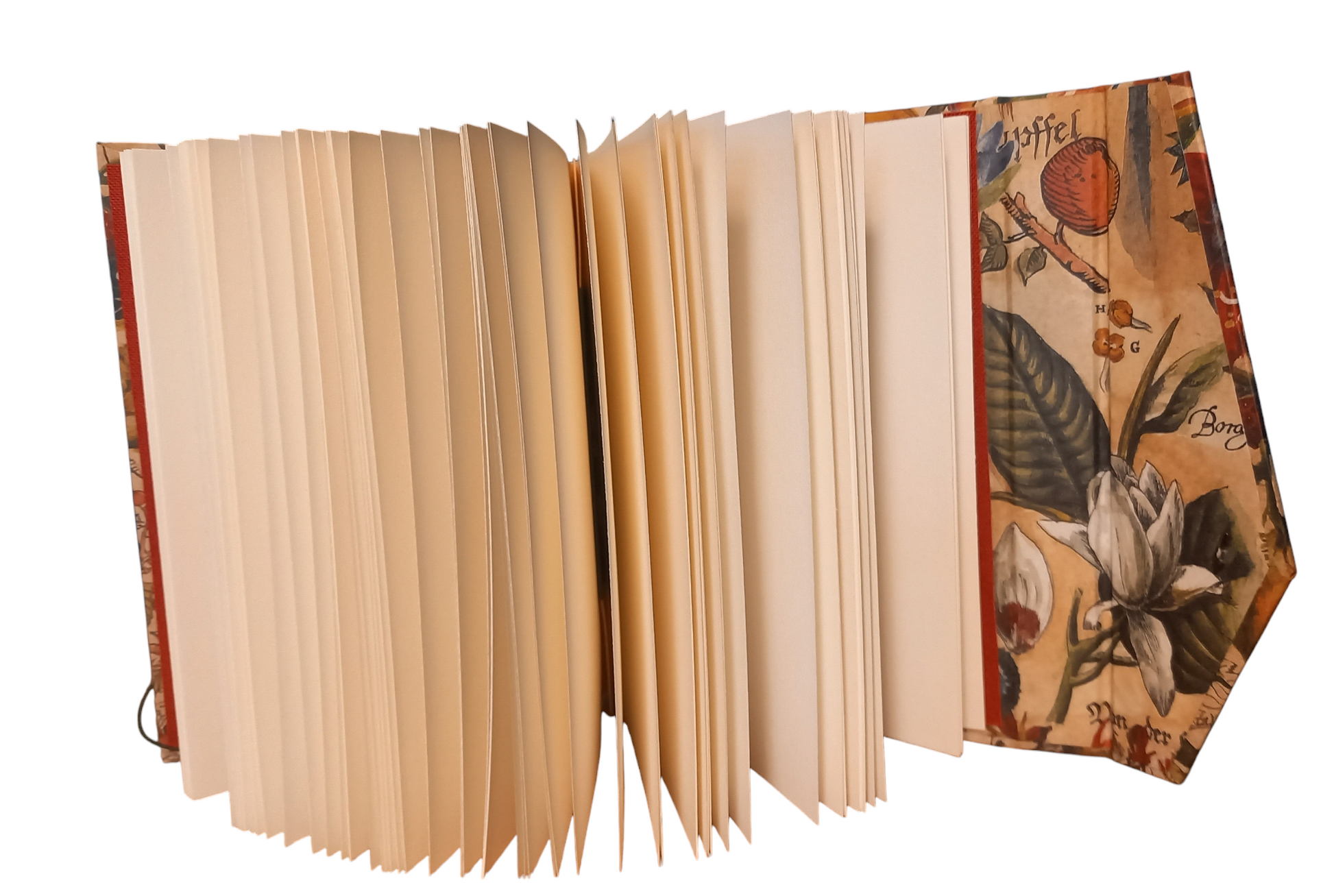 Reliez vos cahiers à l'aide d'un pliage accordéon permettant le maintien des feuillets sans couture. Couverture cartonnée avec un rabat et une fermeture en lacet "à la japonaise".
