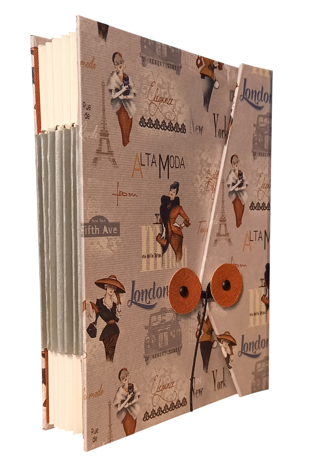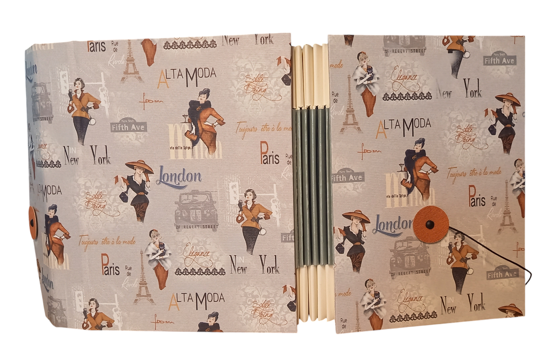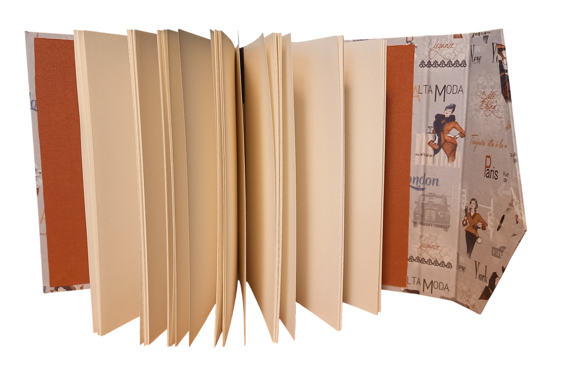Reliez vos cahiers à l'aide d'un pliage accordéon permettant le maintien des feuillets sans couture. Couverture cartonnée avec un rabat et une fermeture en lacet "à la japonaise".