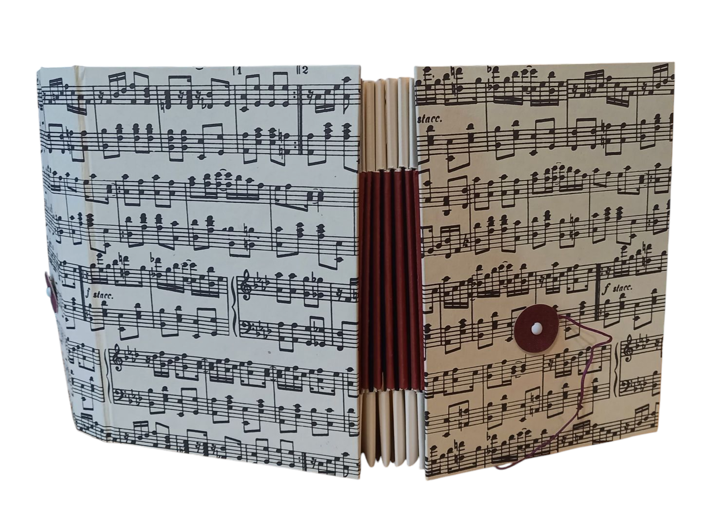 Reliez vos cahiers à l'aide d'un pliage accordéon permettant le maintien des feuillets sans couture. Couverture cartonnée avec un rabat et une fermeture en lacet "à la japonaise".