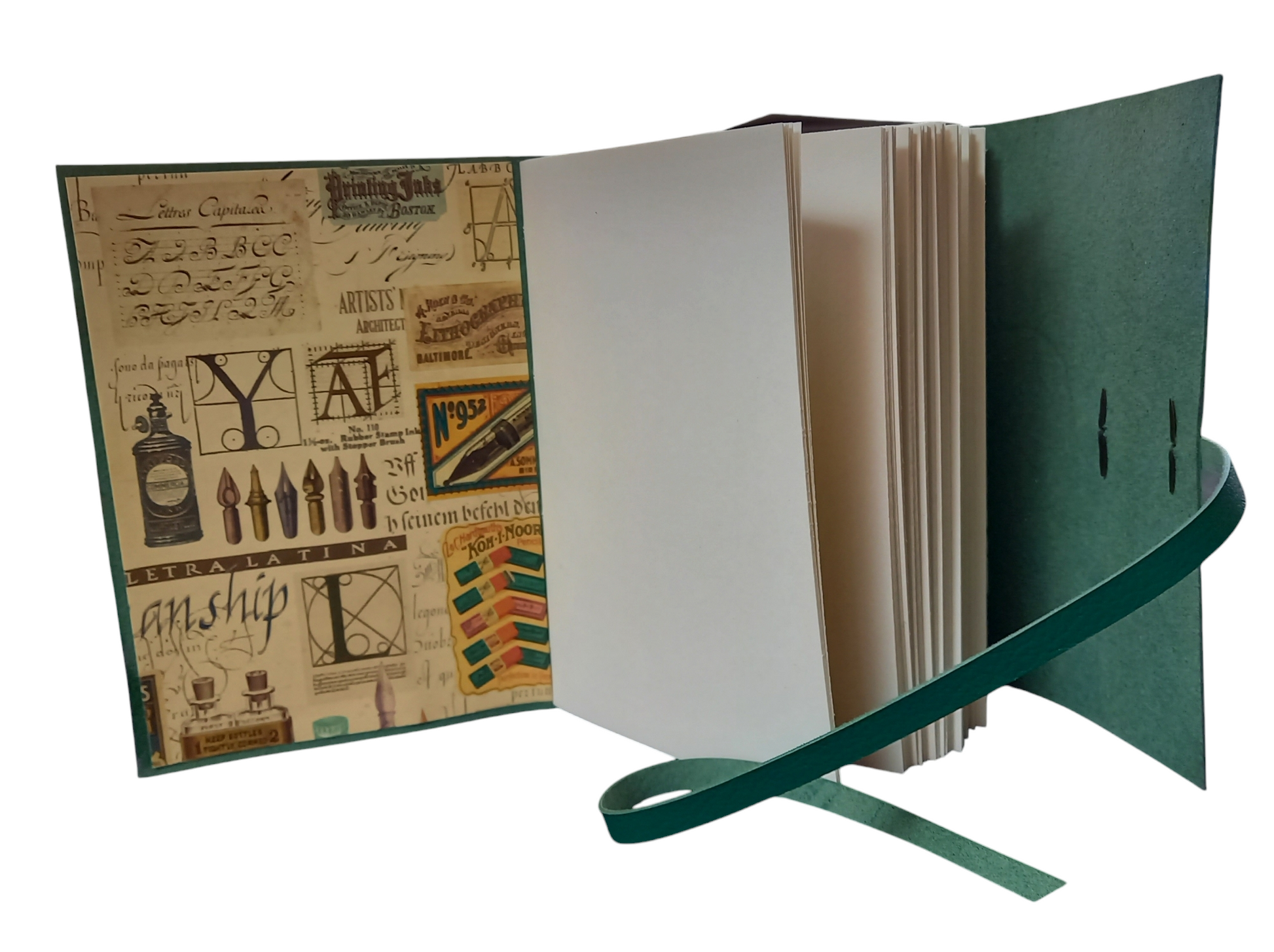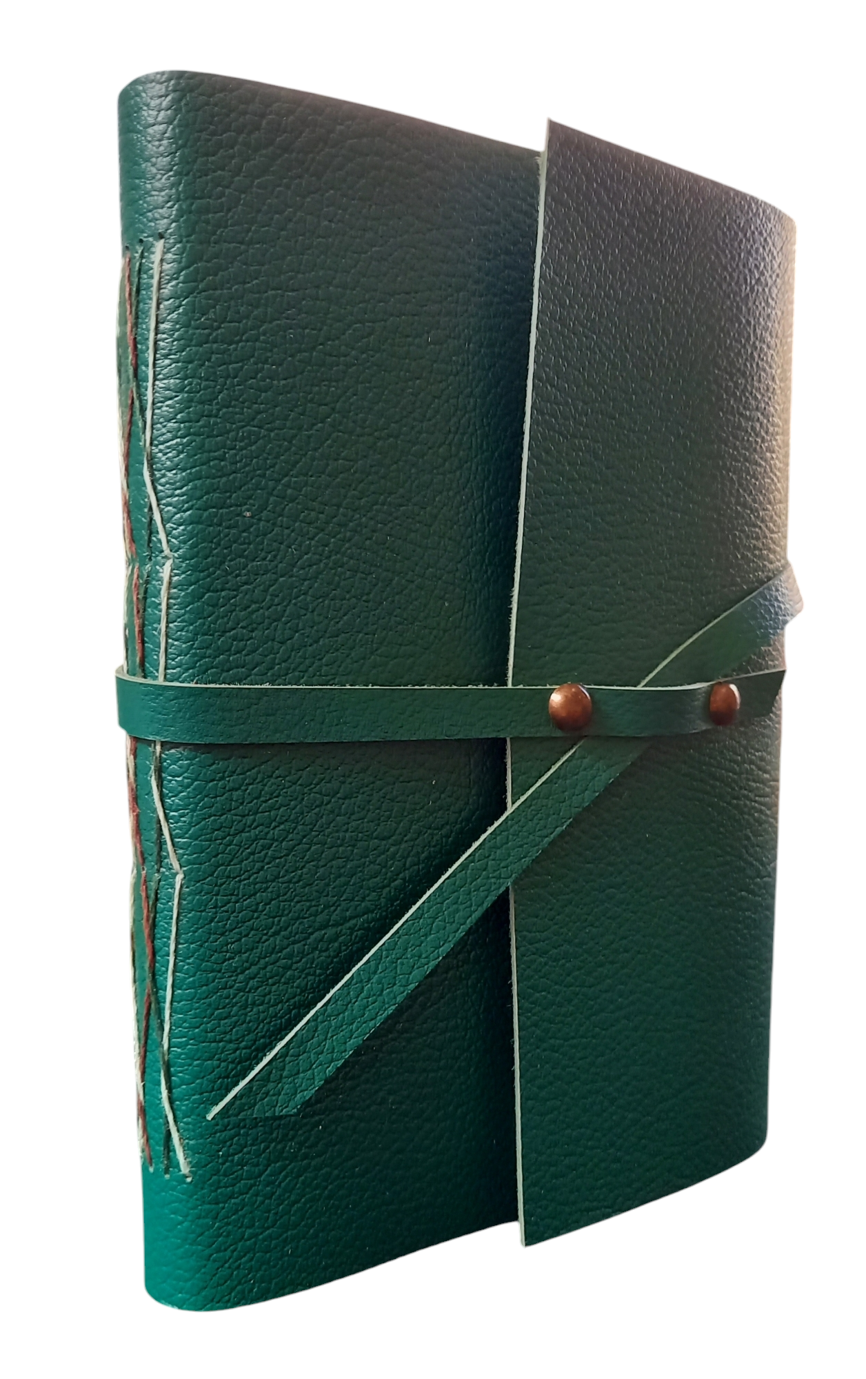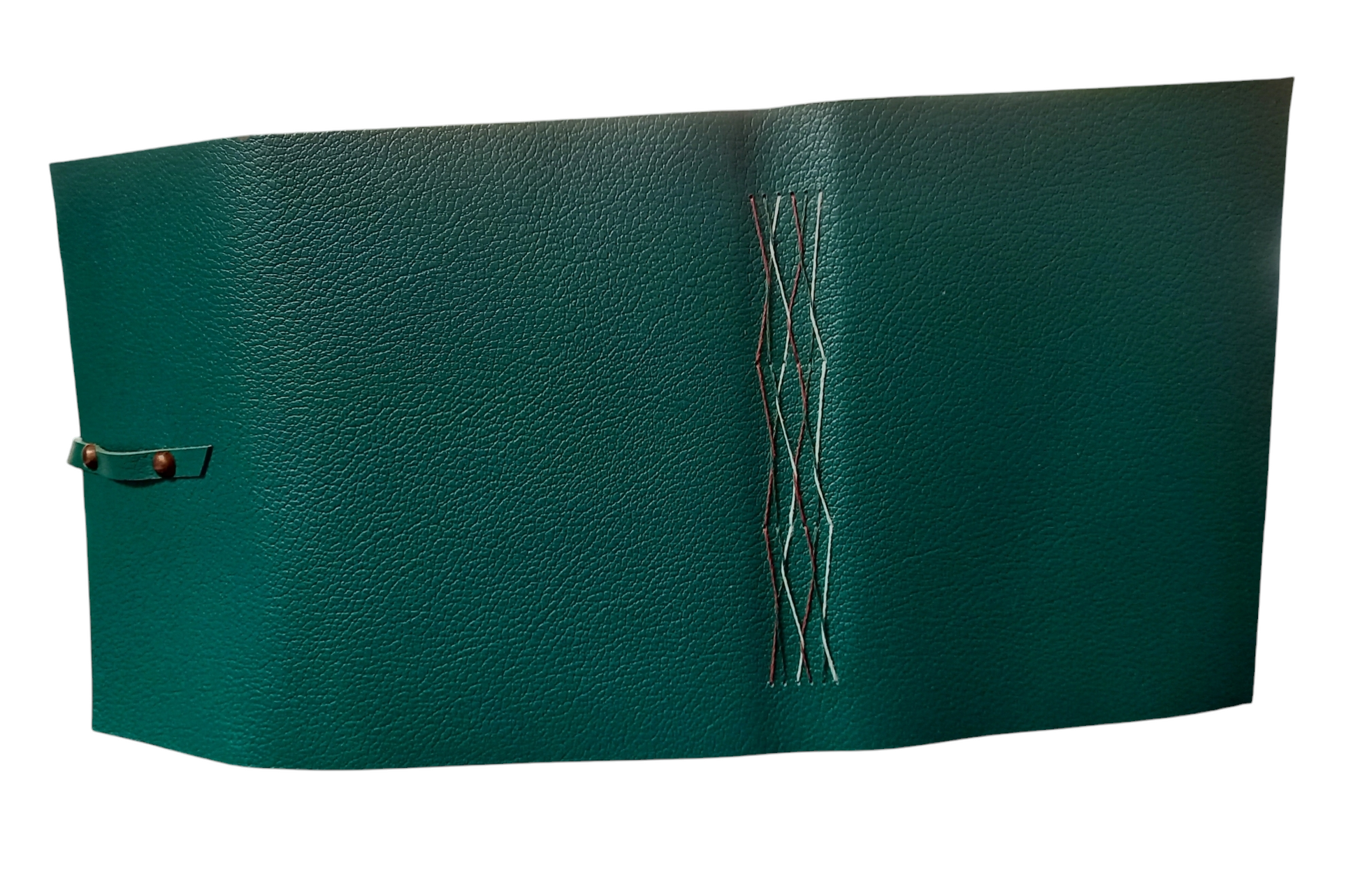 Reliez votre carnet de voyage avec une couture dite "nid d'abeilles", souple, pratique, et muni d'un lacet en cuir pour lien de fermeture.