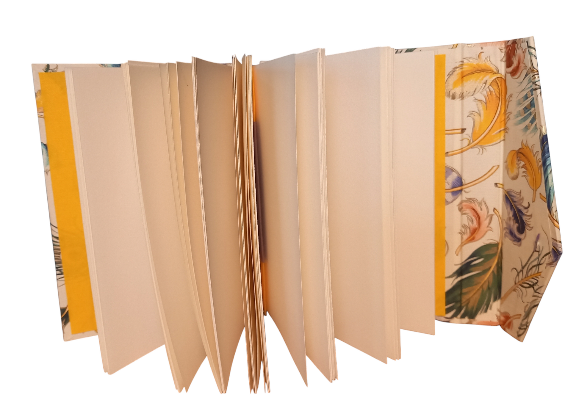 Reliez vos cahiers à l'aide d'un pliage accordéon permettant le maintien des feuillets sans couture. Couverture cartonnée avec un rabat et une fermeture en lacet "à la japonaise".