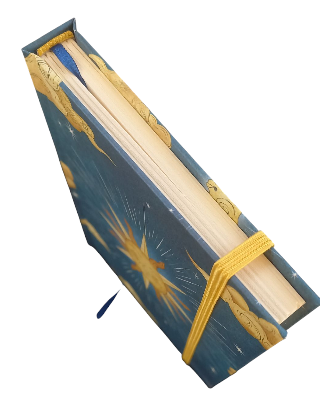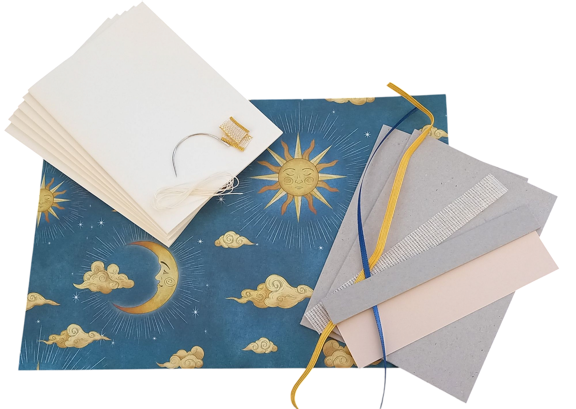 Reliez votre carnet avec une couture "copte" et embellissez le d'une jolie couverture cartonnée agrémentée d'un élastique de couleur pour faciliter sa fermeture.