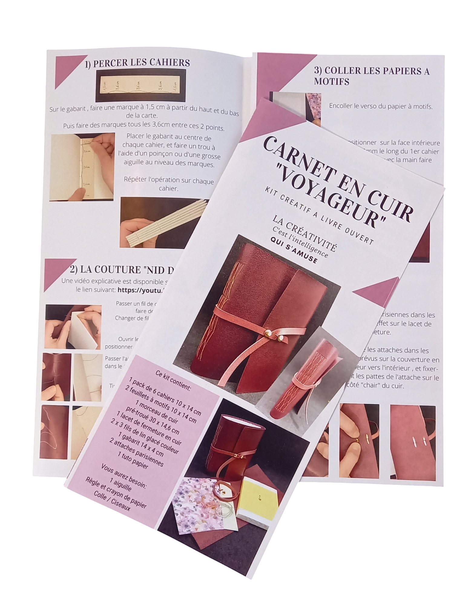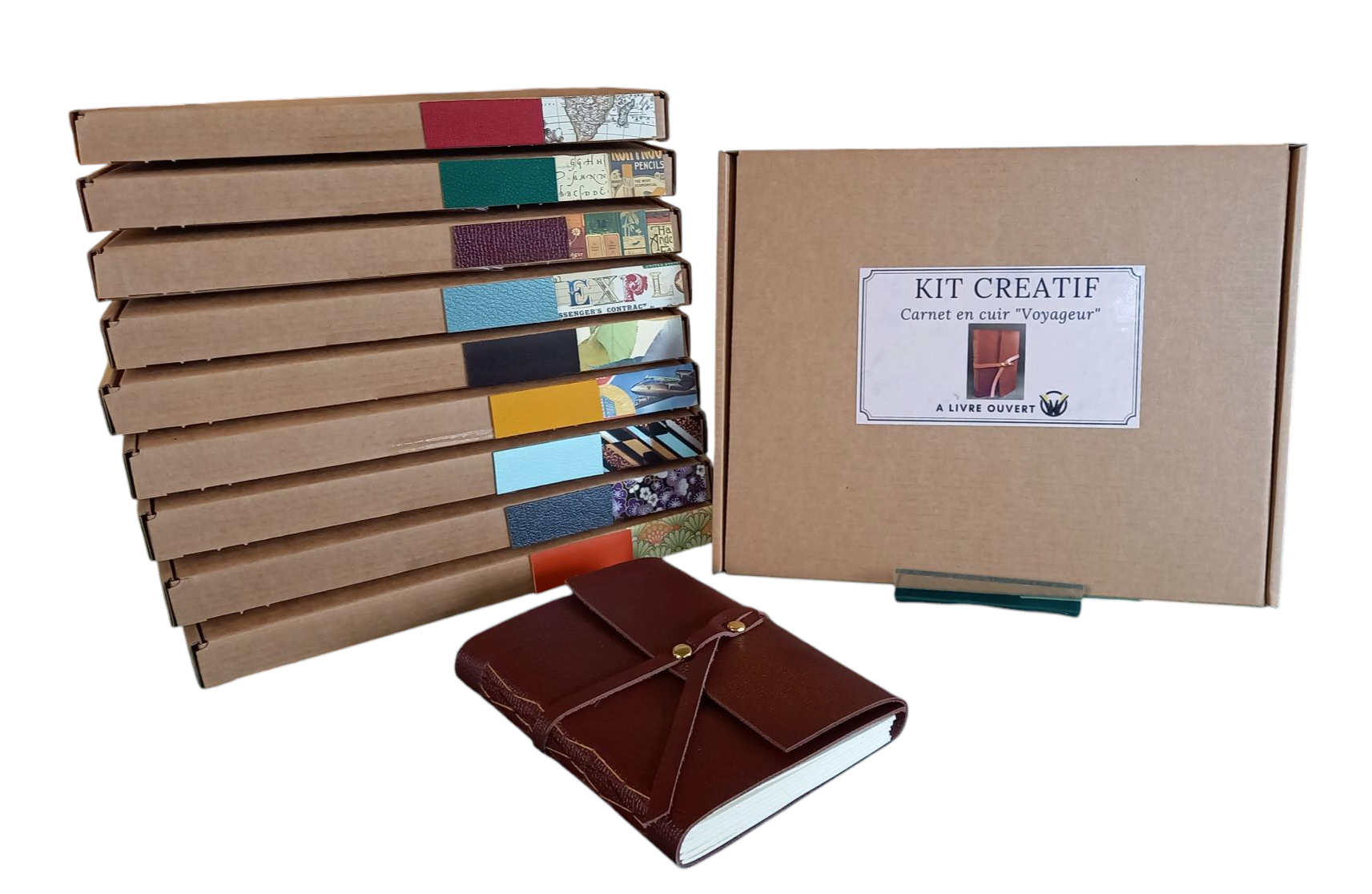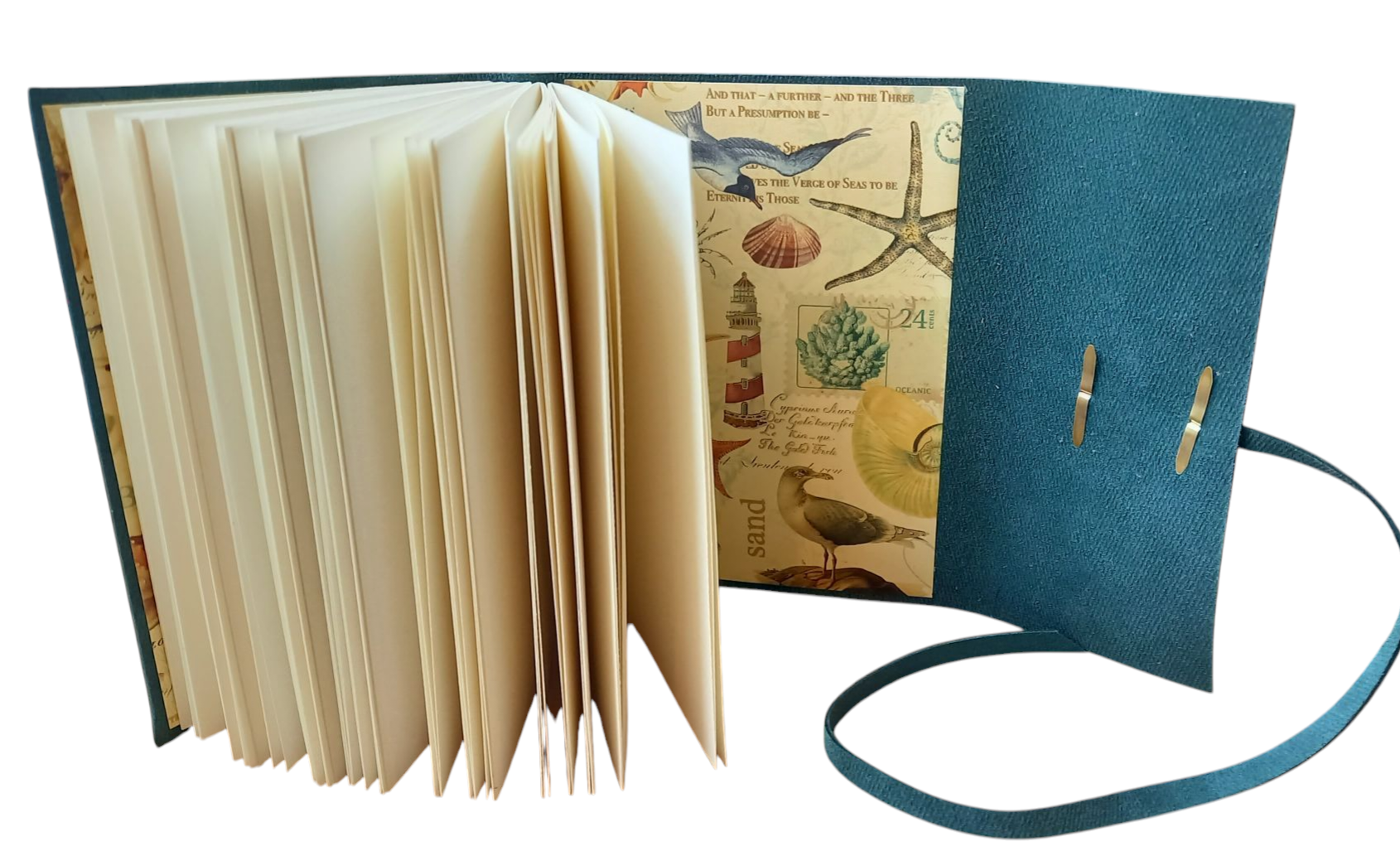 Reliez votre carnet de voyage avec une couture dite "nid d'abeilles", souple, pratique, et muni d'un lacet en cuir pour lien de fermeture.